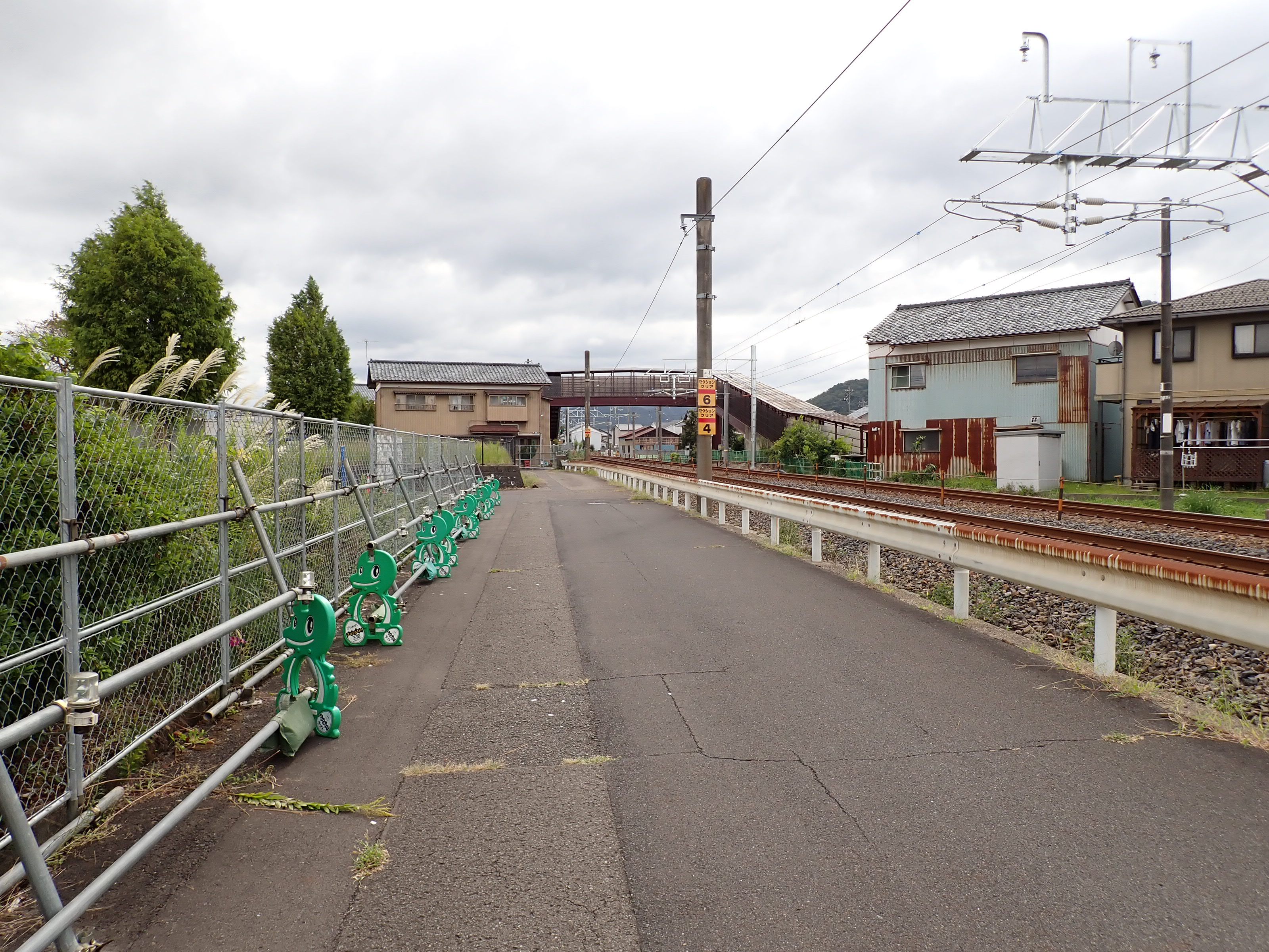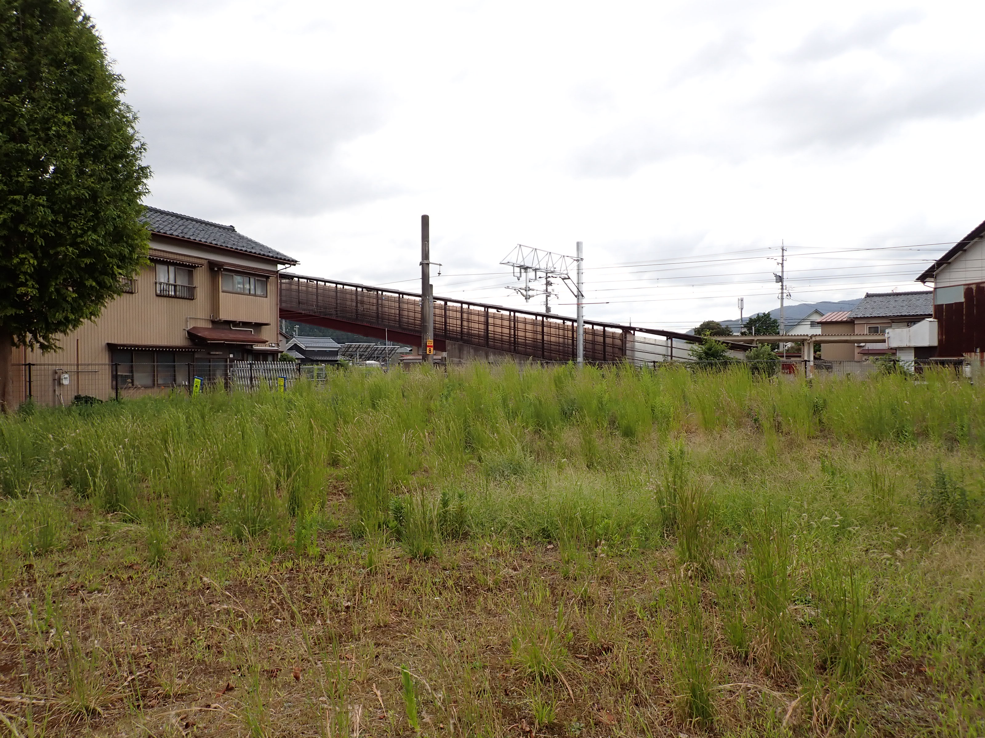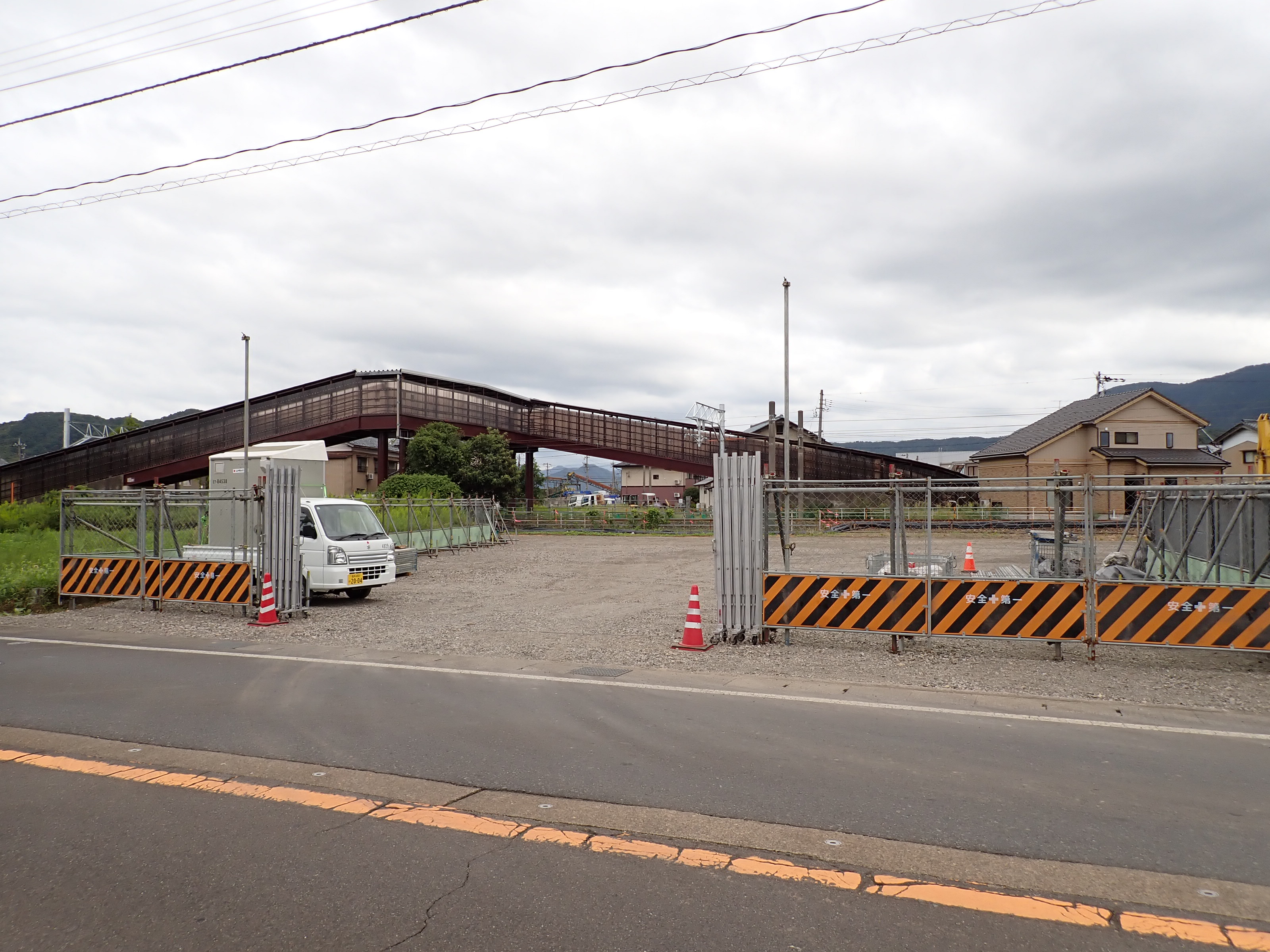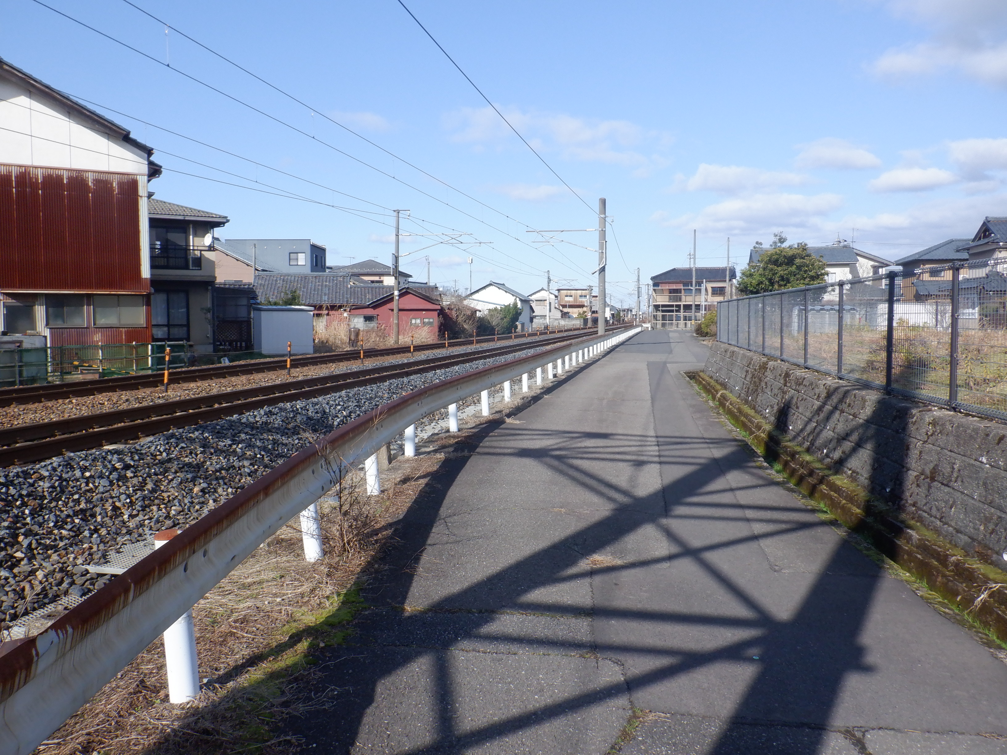 そこからしばらく進むと線路を跨ぐ歩道橋があります。この歩道橋の前後にしきぶ駅が作られることになります。