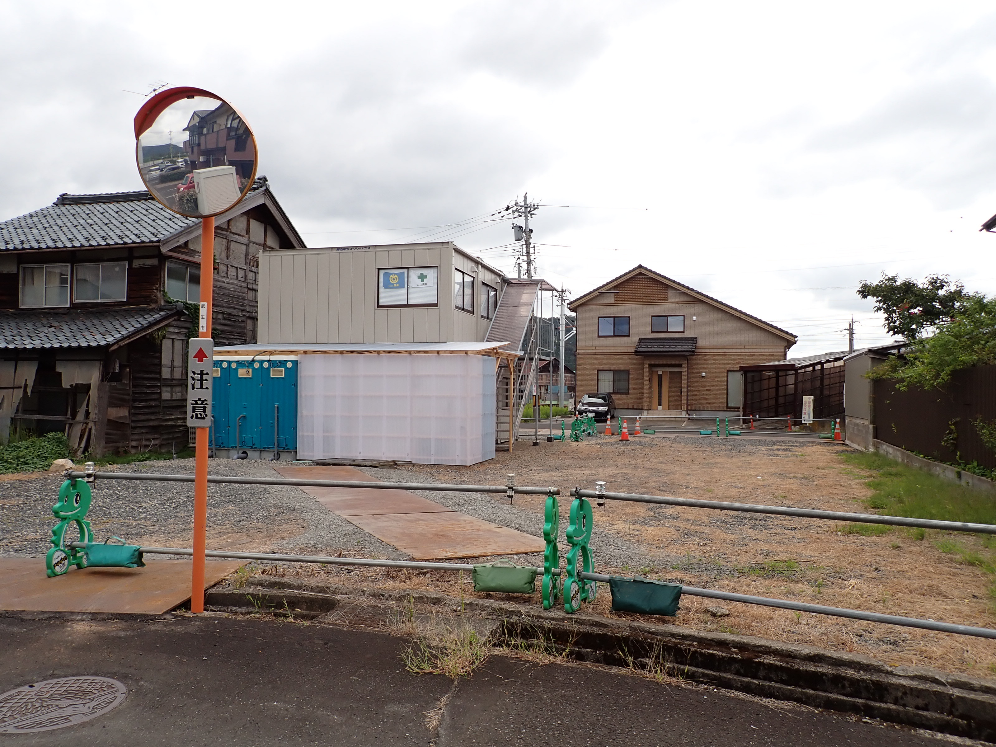 歩道橋の出口の向かい側に作られた現場事務所。
