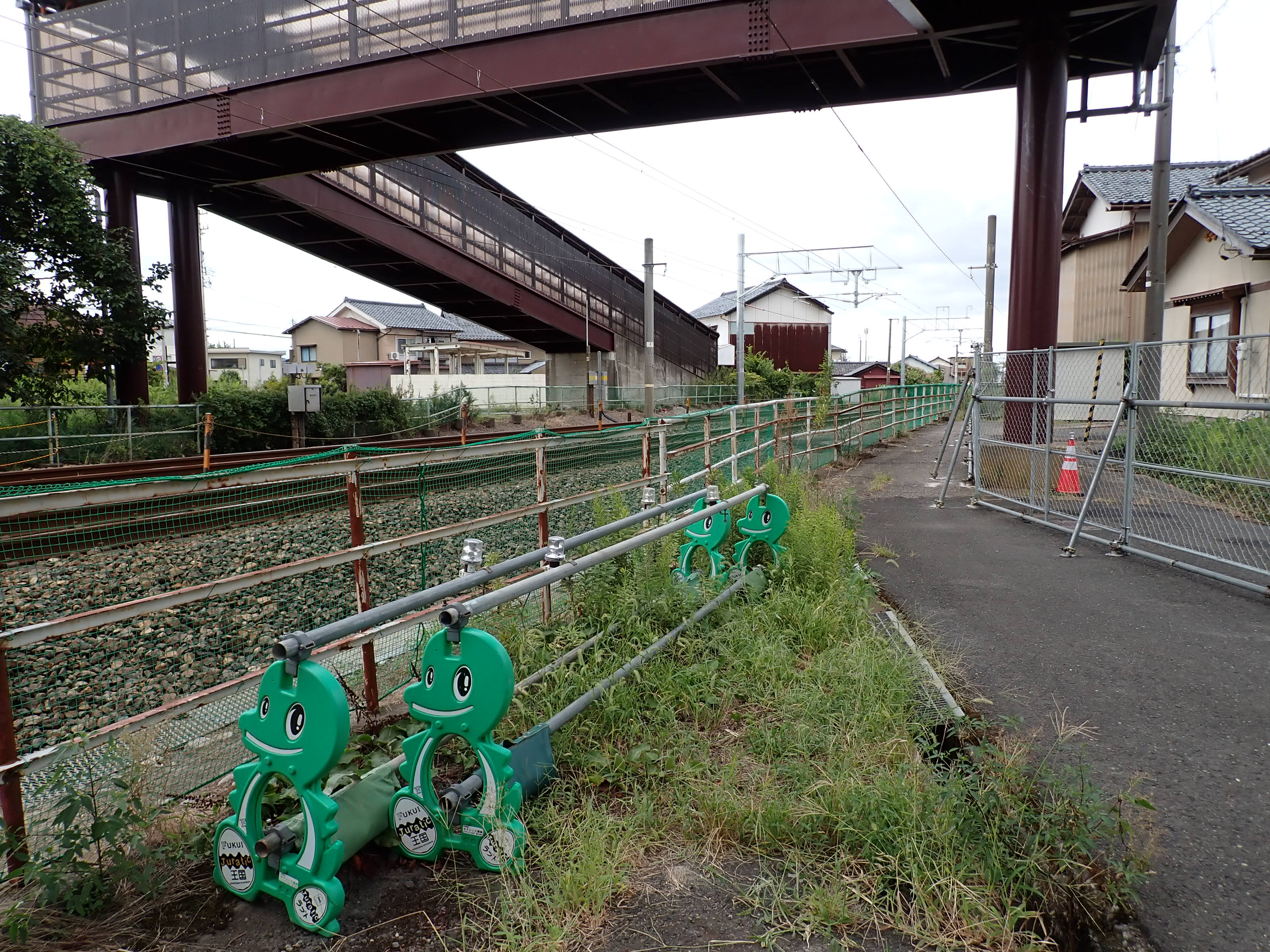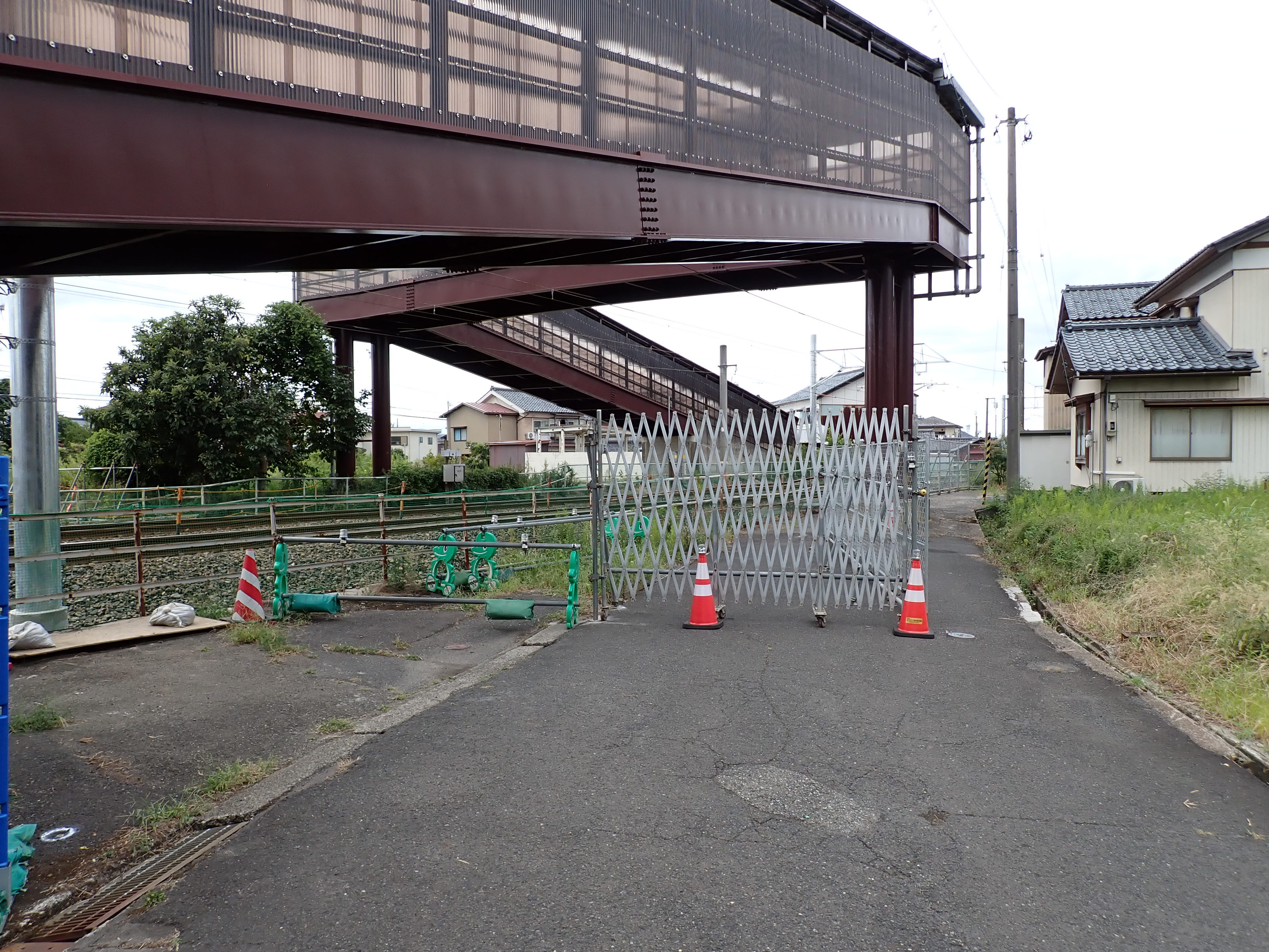歩道橋の下。構内踏切ができるところ。