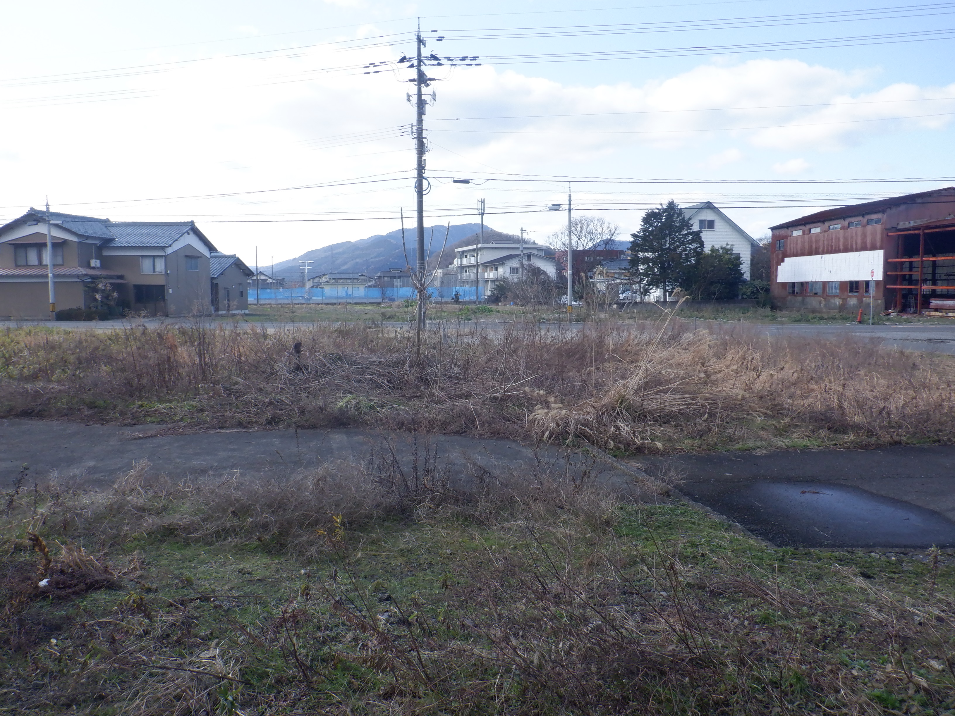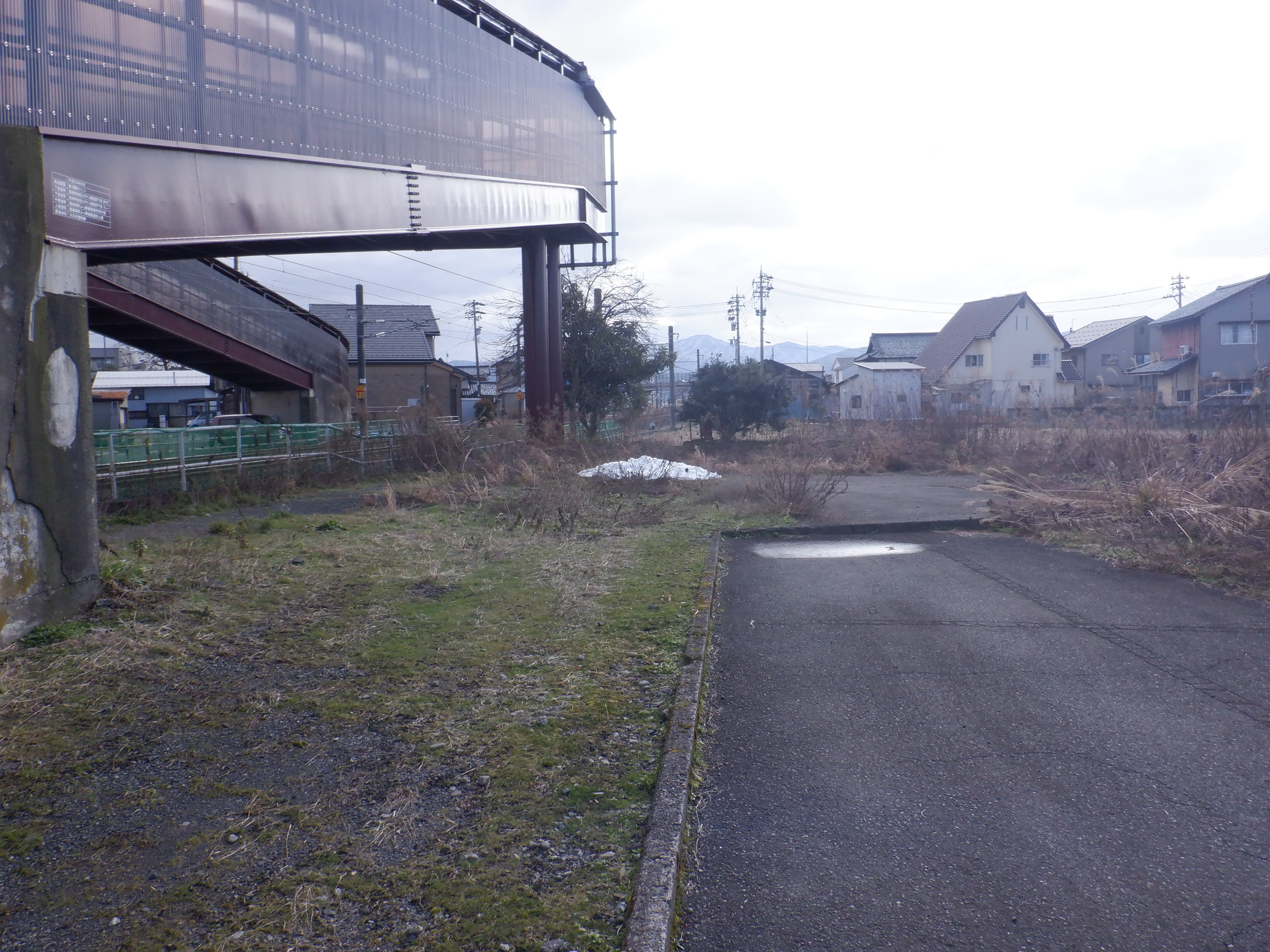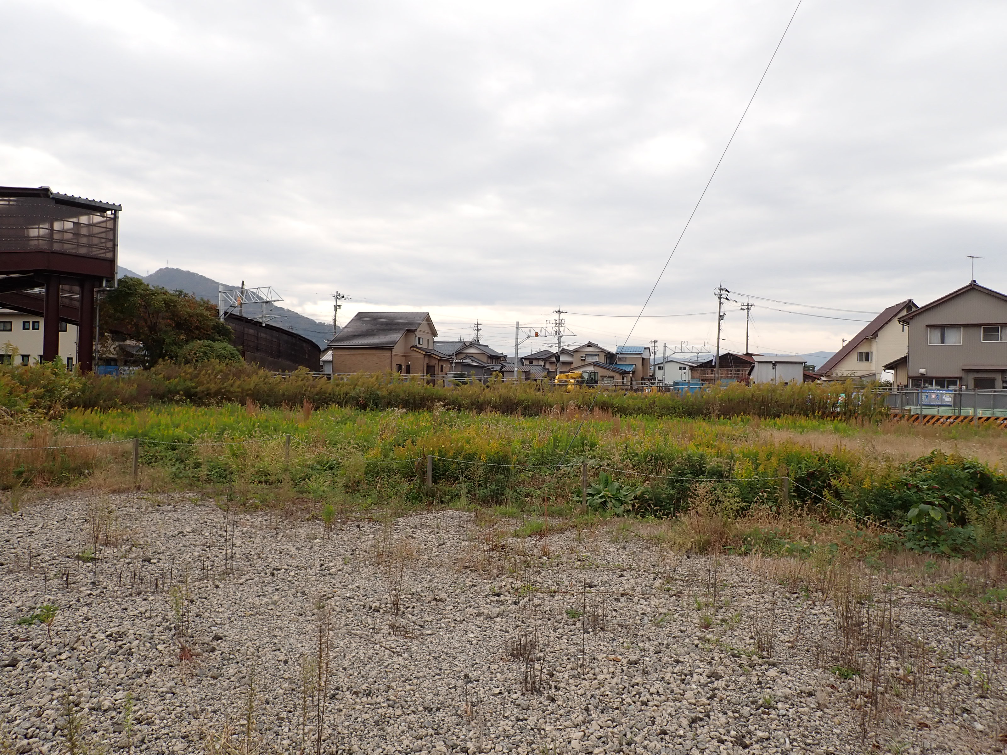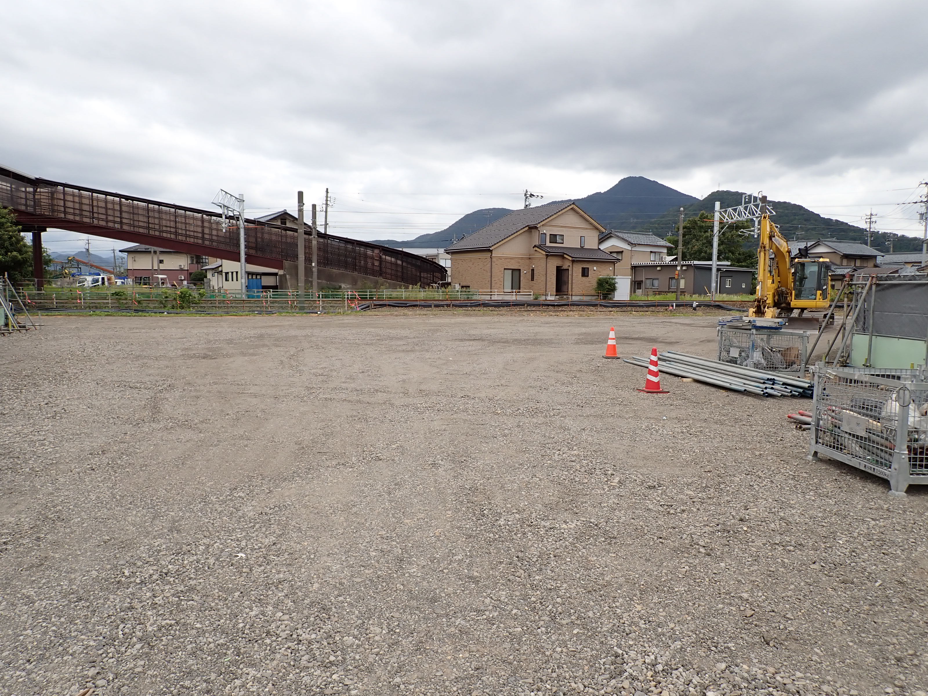 歩道橋の下付近から見た駅前広場となる方向。なお、この場所は工事開始後、しきぶ駅開業まで立ち入ることができなくなります。