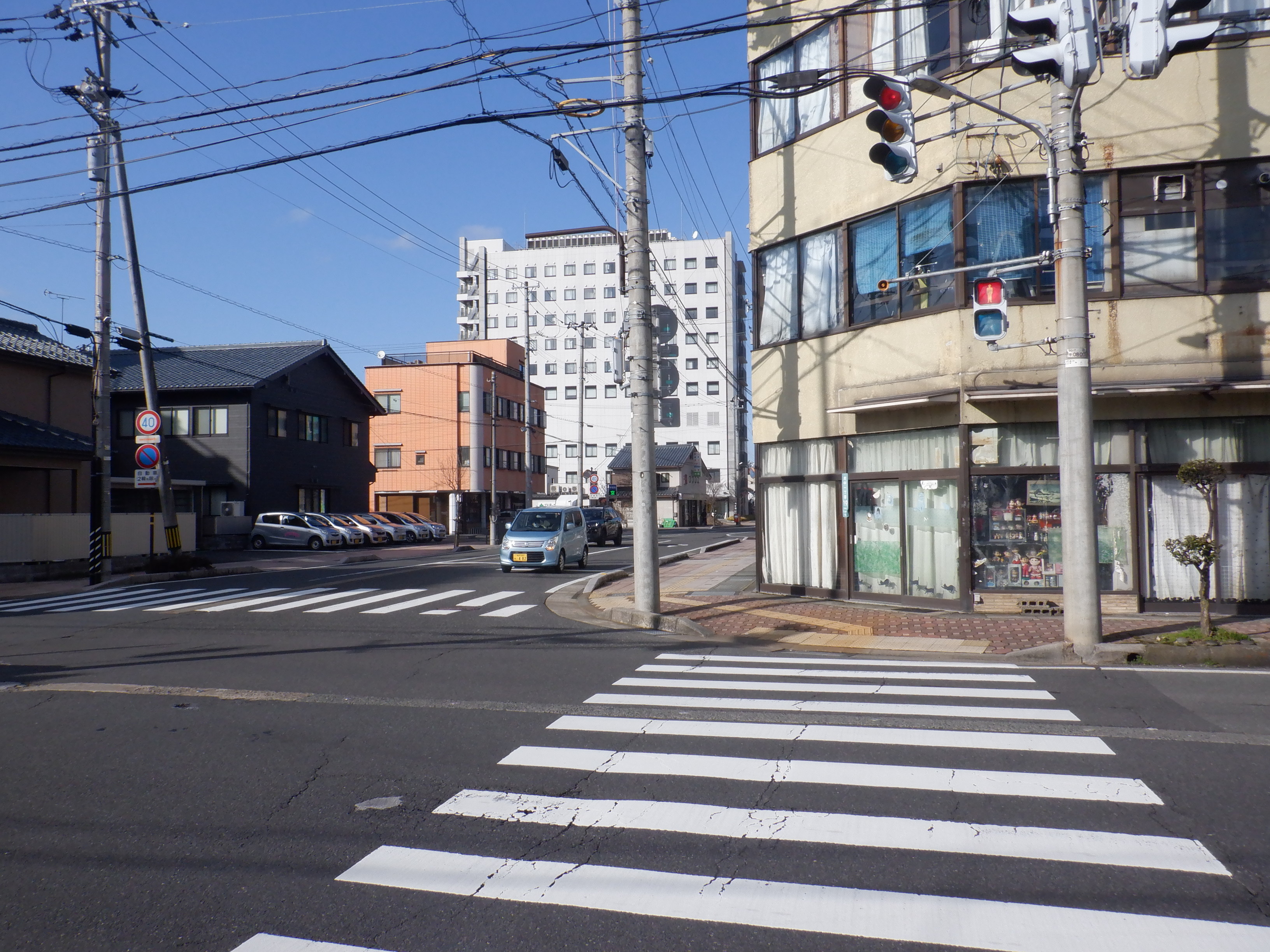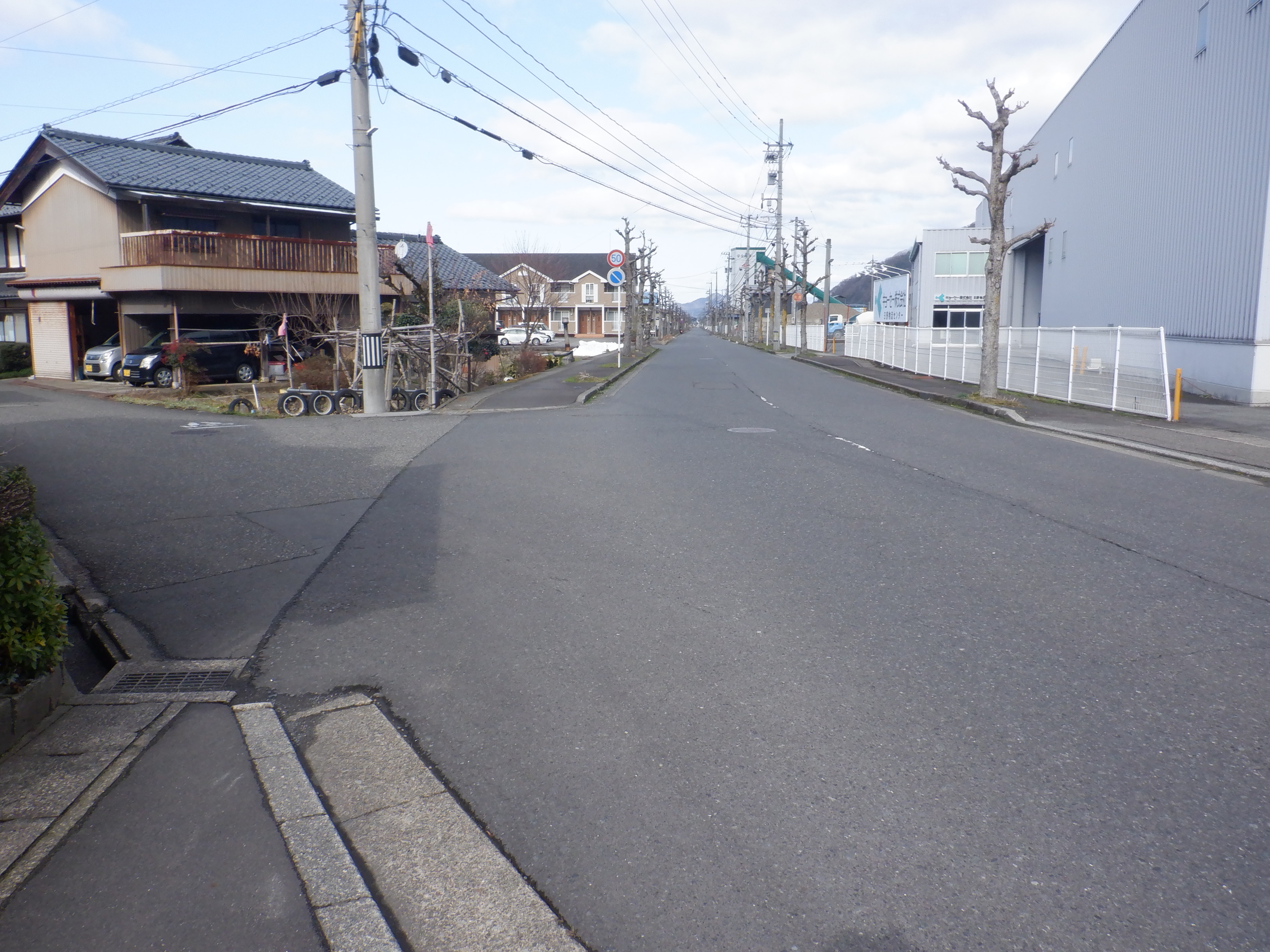 この交差点は、この先しきぶ駅工事中の様子を見た後はまっすぐ進むのですが、この時は右に曲がっています。