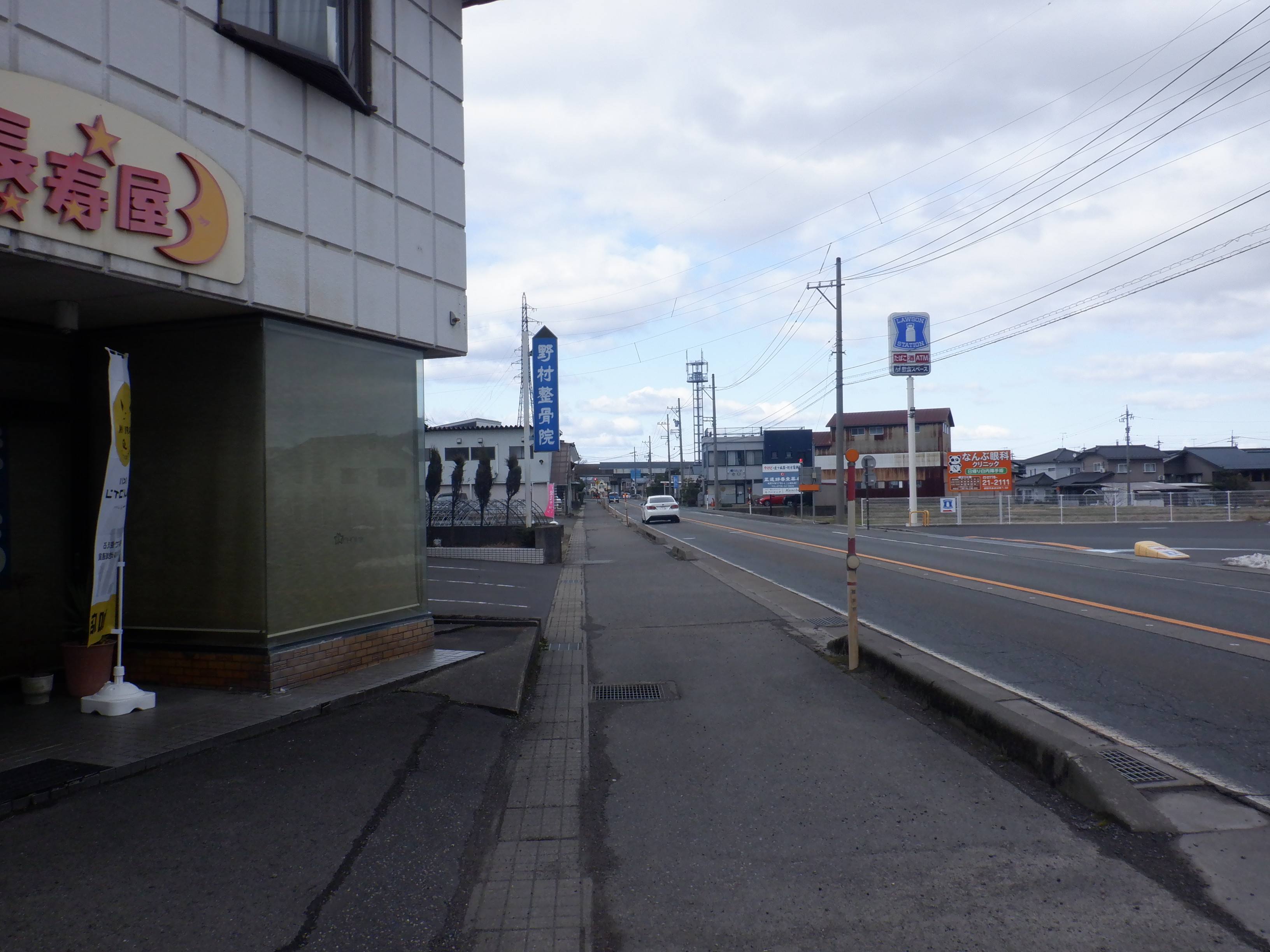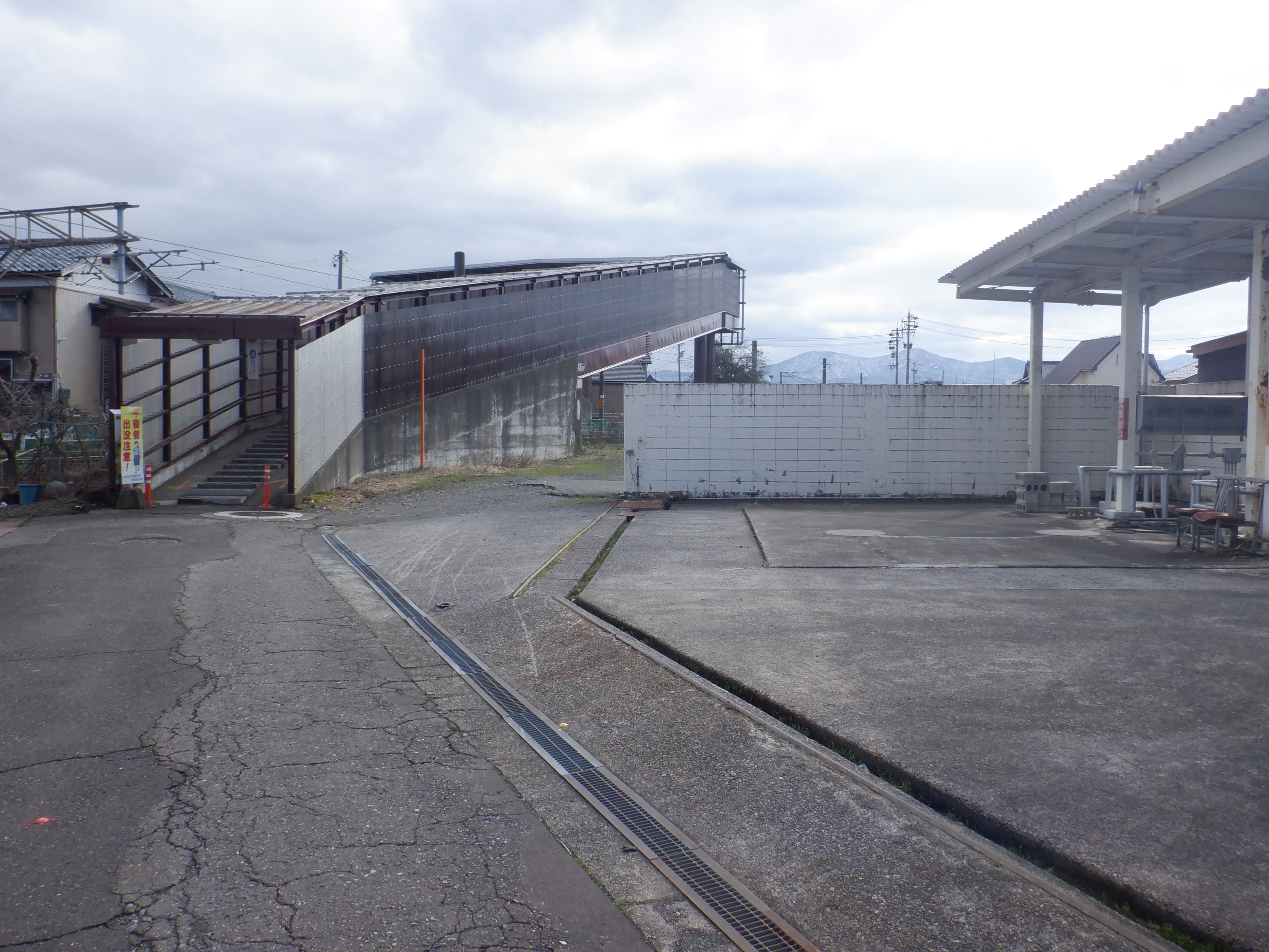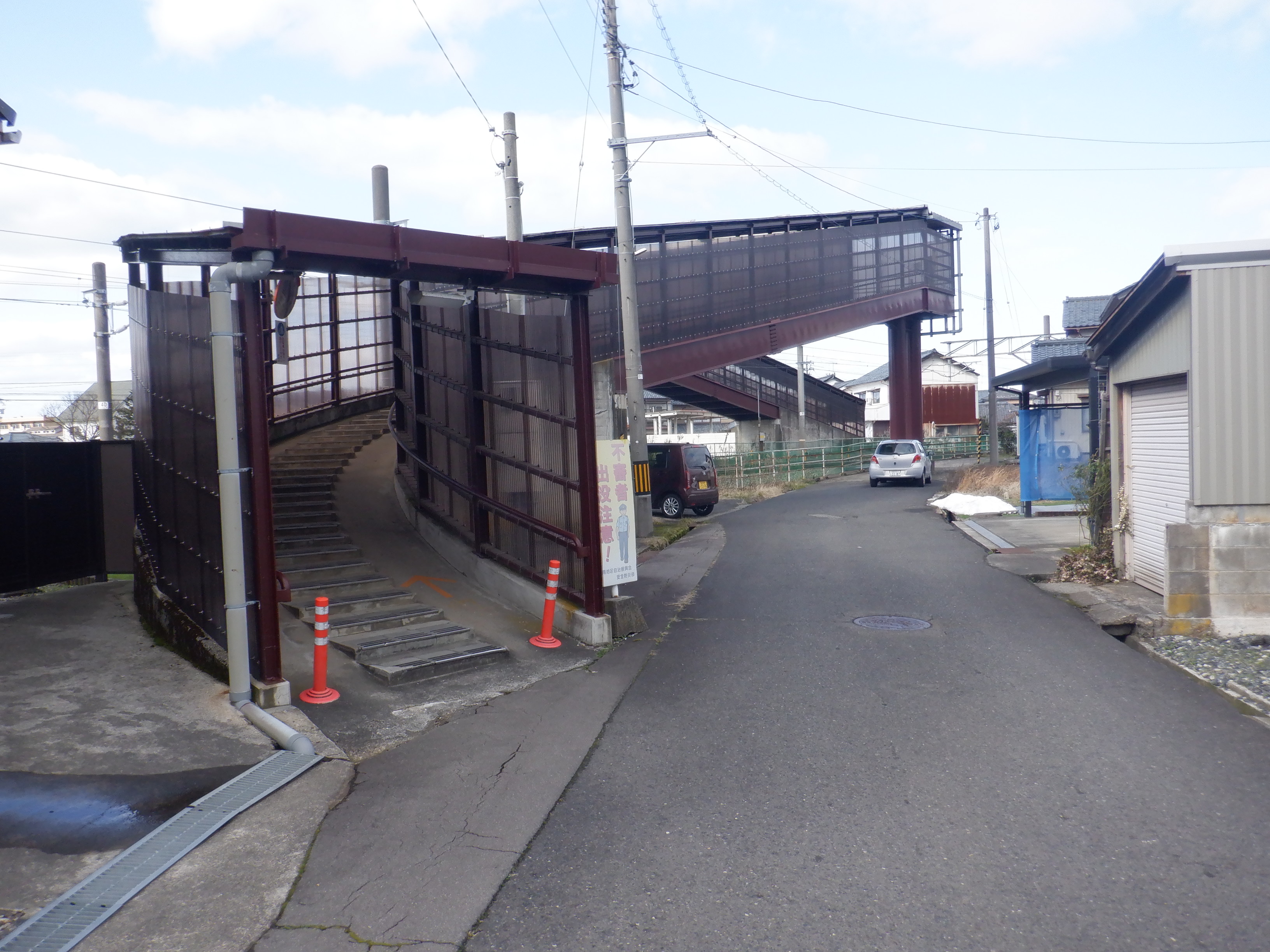 歩道橋入口を少し離れて見たところ。