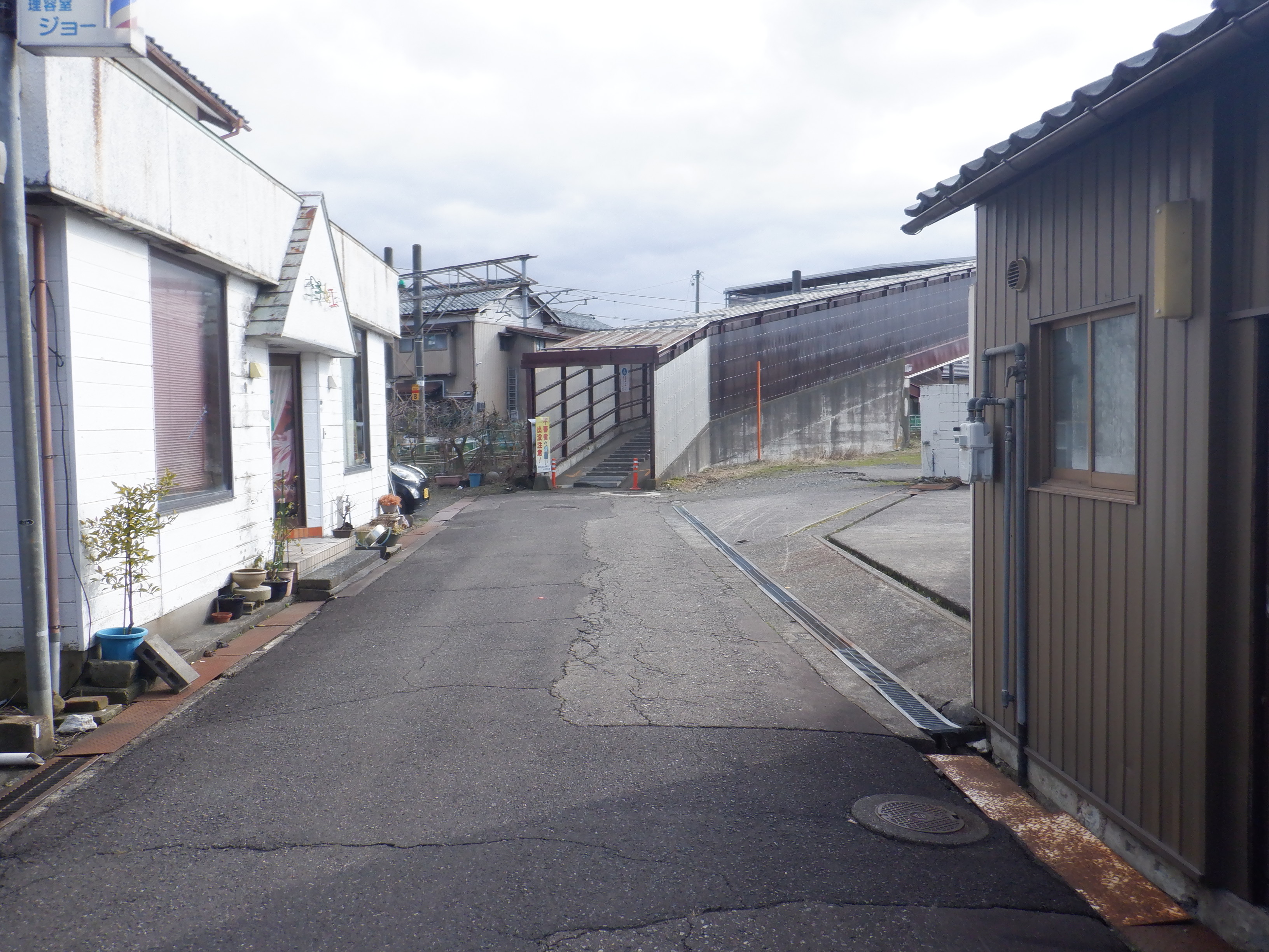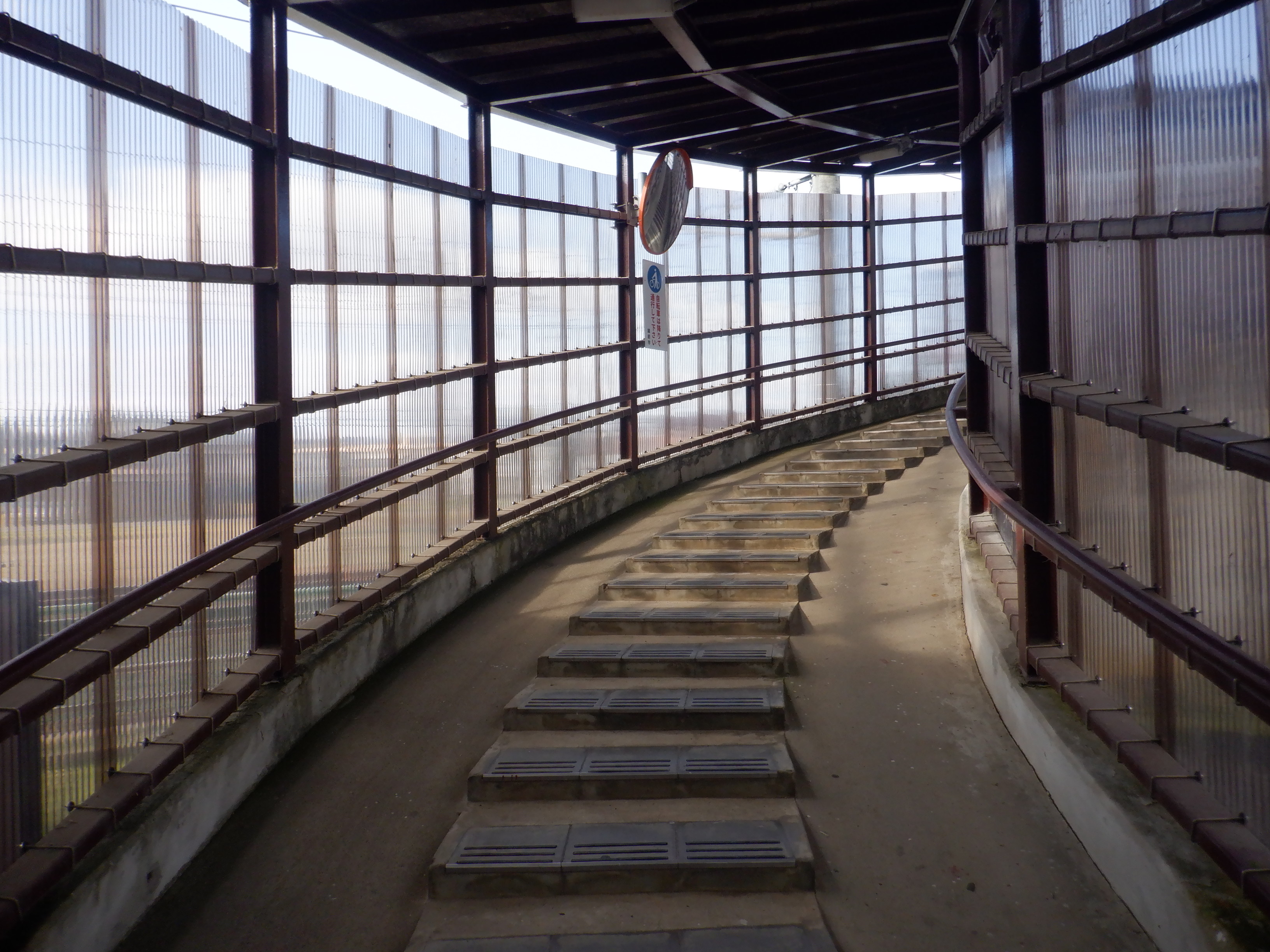 集落からの道は線路と立体交差する道で、歩道部分だけ下をくぐる形になっています。