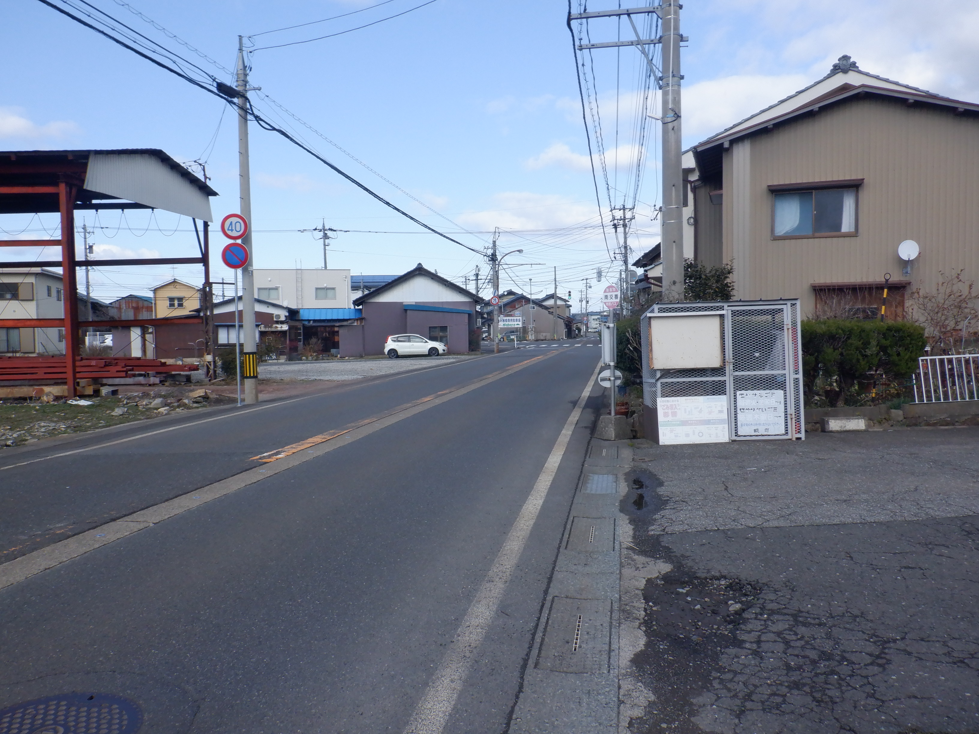 通りに出て、南交番バス停。