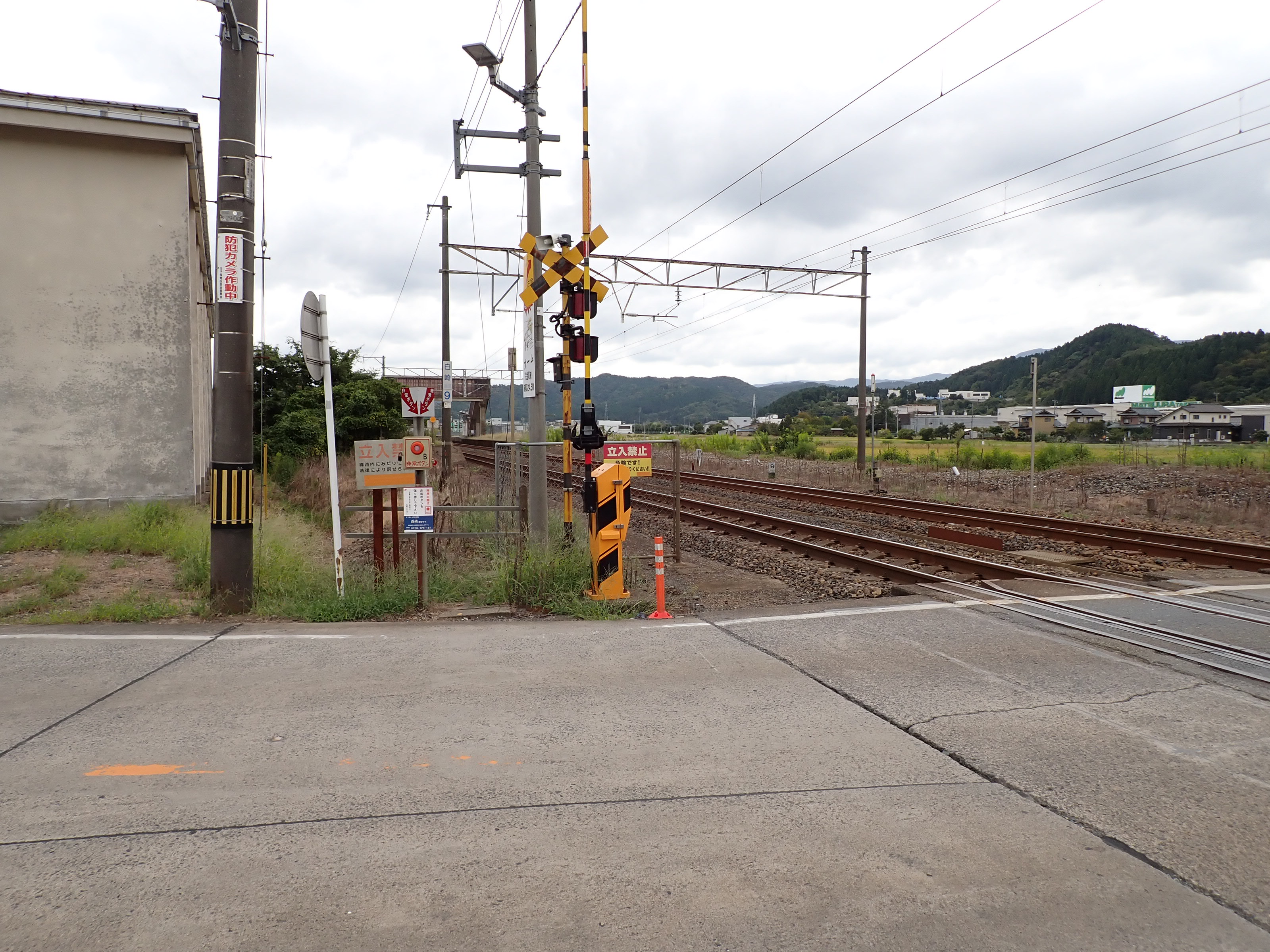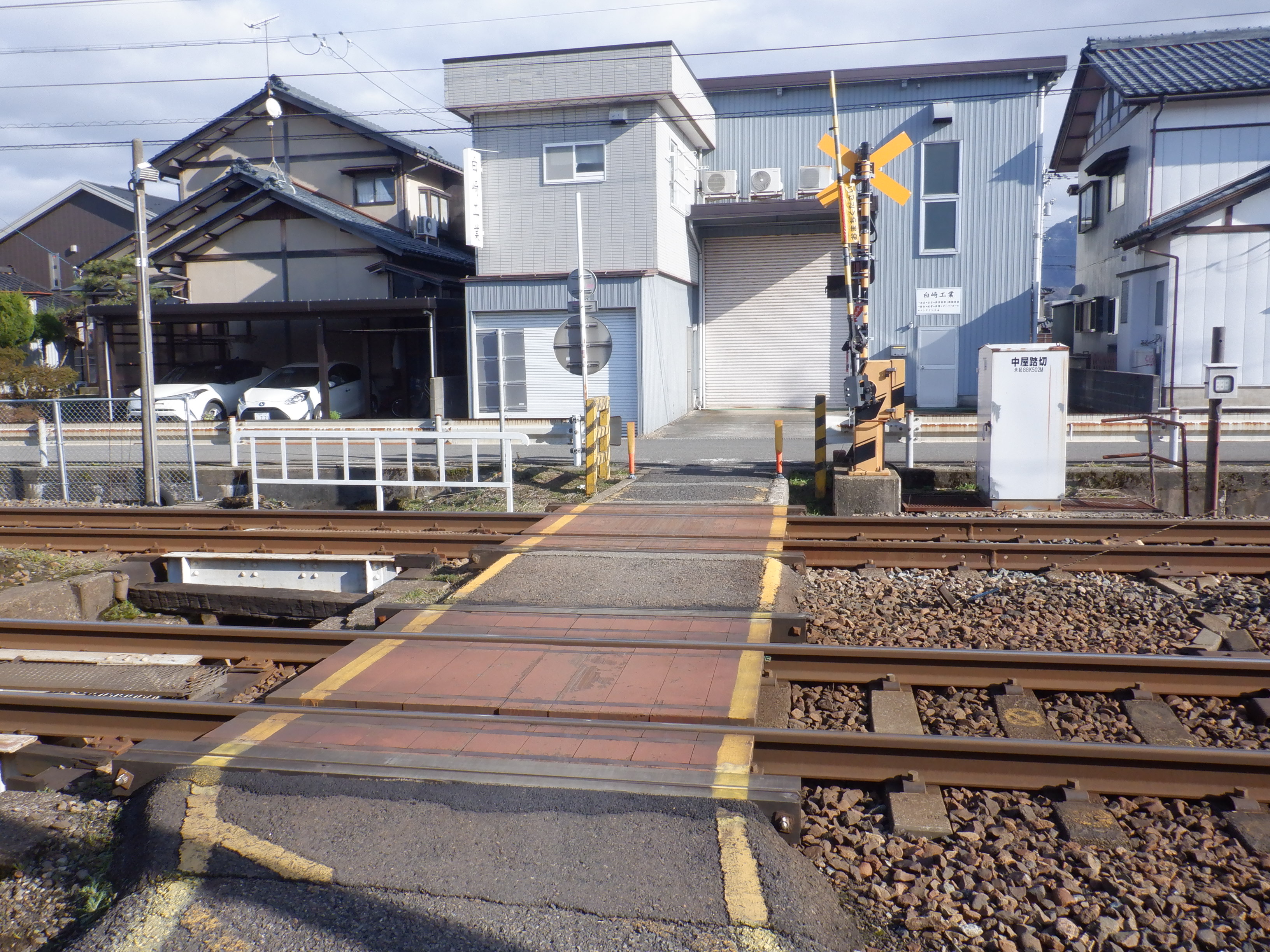 踏切を渡ります。